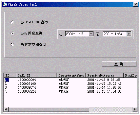 用戶電話進(jìn)入中心,并轉(zhuǎn)至坐席,此時如果坐席處于忙或非工作時間,中心會自動提示用戶留言,留言后坐席在一定的時間內(nèi)給予回復(fù)處理,并在處理的同時對所有的語音留言Voice Mail做狀態(tài)分類統(tǒng)計。中心還對用戶留言的處理過程進(jìn)行跟蹤,以便防止大量語音留言不能得到及時處理,影響中心的服務(wù)質(zhì)量。