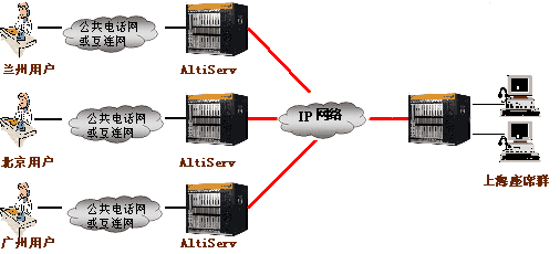 奧迪堅(jiān)分布式呼叫中心圖 (多對一):