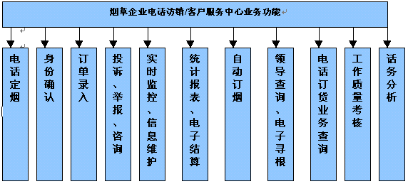 隨著國內煙草專賣體制市場化進程的不斷推進,在煙草全行業(yè)建立以"電話訂貨、網(wǎng)上配貨、電子結算、現(xiàn)代物流"為基本特征的現(xiàn)代流通體制已經(jīng)成為必然的選擇,實現(xiàn)煙草專賣體制下舊的和落后的營銷體制向現(xiàn)代營銷體制的轉變。煙草企業(yè)建立電話訪銷/客戶服務系統(tǒng)的目標是最大程度地提高客戶的滿意度,其核心是實現(xiàn)高水平的建設水平,提高企業(yè)對市場的控制力,最終保證企業(yè)擁有持續(xù)的競爭力和良好的贏利。