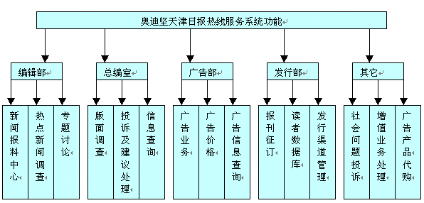 《天津日報》是天津地區(qū)最重要、最權(quán)威的新聞媒體,在經(jīng)歷了半個多世紀(jì)的輝煌歷程后,現(xiàn)已成長壯大成為擁有十報兩刊一網(wǎng)站的報業(yè)集團,其自身在多年的發(fā)展下逐漸由單一的一份機關(guān)報逐漸成為一份具有都市特征的綜合類大報,發(fā)行量不斷攀升,讀者群體不斷擴大,面對的競爭也更為激烈。為了更好整合報社資源,規(guī)范報社對外窗口形象,提升核心競爭力,《天津日報》經(jīng)過廣泛的市場調(diào)研,最終選用奧迪堅基于IP的分布式呼叫中心系統(tǒng)組建天津日報服務(wù)熱線系統(tǒng),該系統(tǒng)是建立在奧迪堅IP一體化呼叫中心平臺之上,采用統(tǒng)一接入號碼,借助華泰貝通憑借多年的呼叫中心建設(shè)經(jīng)驗,為讀者搭建起來一座溝通的橋梁。