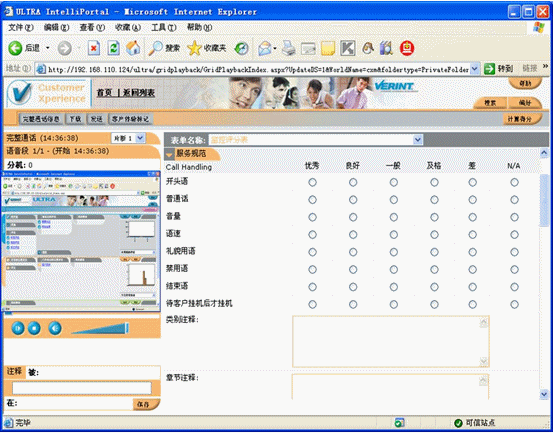 Verint績效管理系統(tǒng)包含績效管理分析,業(yè)務(wù)流程優(yōu)化和在線培訓(xùn)模塊,幫助對于呼叫中心的管理和對業(yè)務(wù)流程的量度,使企業(yè)能在更新和更高的層面來判斷和優(yōu)化業(yè)務(wù)流程。