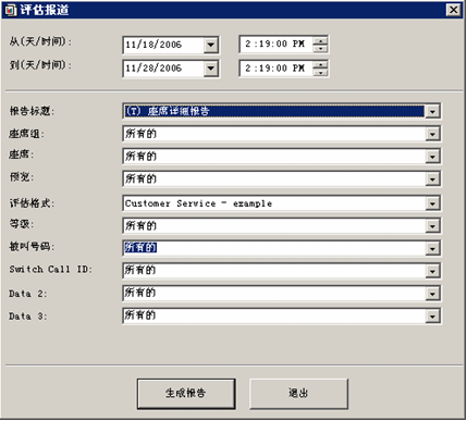 在質(zhì)量管理系統(tǒng)中,用戶可以通過評估報(bào)表生成器,定義客戶化的評估報(bào)表。用戶可以針對座席的表現(xiàn)生成文字和圖形化的報(bào)表。通過這些報(bào)表,可以了解需要改善和增強(qiáng)的座席培訓(xùn)內(nèi)容。