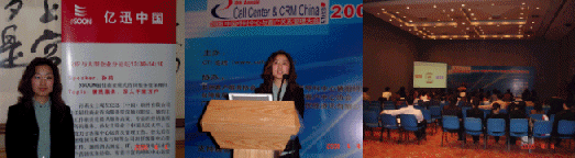 一年一度的中國呼叫中心與客戶關系管理大會于2006年4月3日在北京國際會議中心隆重開幕,并與4月5日圓滿閉幕。今年大會主題為:新時期的呼叫中心及CRM,成就與挑戰(zhàn)。此次活動吸引了與呼叫中心相關的各界人士的光臨,共計1000多人與會,活動連續(xù)三天。億迅(中國)軟件有限公司(eSOON)作為呼叫中心及CRM業(yè)優(yōu)秀的開發(fā)商和集成商,在本次大會上以特別贊助商的身份閃亮登場,給大家留下了深刻的印象,并為大家?guī)砗艚兄行募癈RM領域最新的趨勢分析及最佳的解決方案。
