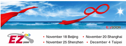 翹首以盼的億迅用戶大會—EZ Infinity 2008即將在近期為大家揭開神秘面紗。在今年,億迅完成了一次新的蛻變,即從G-force合作伙伴的身份成熟轉(zhuǎn)型成為EZ Infinity的主辦方,從2008年11月18日起至12月4日, EZ Infinity將在北京,上海,深圳和臺北相繼舉辦,為大家?guī)硪粓鰣鲂迈r出爐的精辟演講和豐富多彩的專題討論活動。