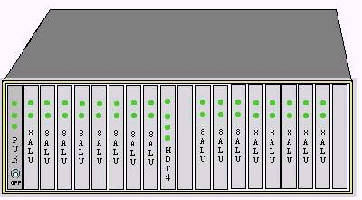 見上圖 DAS120主機(jī)所用的機(jī)框為19英寸標(biāo)準(zhǔn)機(jī)框,可直接裝入19英寸機(jī)柜,也可放置在桌面。機(jī)框共有20個槽口,兩邊可插兩塊電源板PSU,中間插數(shù)字中繼接口板HDT4,其余16個槽可插15塊模擬用戶板8ALU(或8ATU)。8ALU每塊板為8路,一個機(jī)框總共120路。