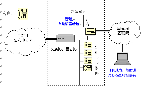 【音通】系統(tǒng)一經(jīng)安裝,生產(chǎn)力及工作效率便可大大提升。接線員不需再無(wú)時(shí)無(wú)刻守候在電話旁邊處理來(lái)電。即使在辦公時(shí)間過(guò)后,此系統(tǒng)仍能繼續(xù)自動(dòng)運(yùn)作。方便的語(yǔ)音郵箱功能,隨時(shí)隨地收聽(tīng)E-MAIL。