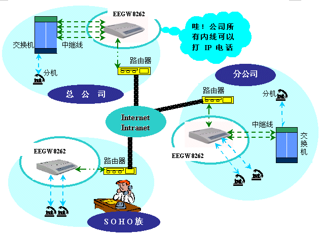 EEGW 8262 FXS根據(jù)國(guó)際電信組織ITU-T的H.323協(xié)議,提供語(yǔ)音及傳真在網(wǎng)際網(wǎng)絡(luò)上的服務(wù),只需一個(gè)IP地址及兩部電話機(jī)〈傳真機(jī)〉,即可享受VoIP的好處;適合住家型,SOHO族,及中小企業(yè)使用。