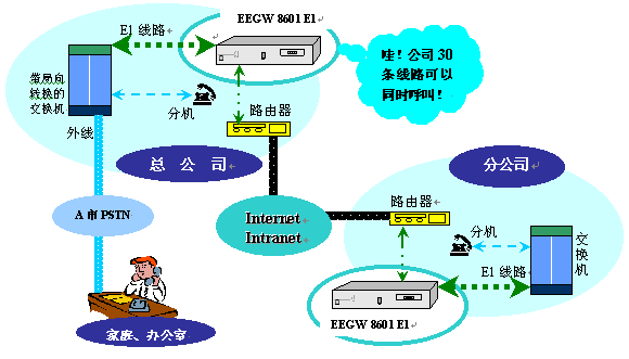 ~ 120個(gè)電話呼叫。它由于只需支付上網(wǎng)費(fèi)而大幅度減少話費(fèi)支出,這是實(shí)現(xiàn)企業(yè)總公司與分公司間異地間通訊的最經(jīng)濟(jì)方案。