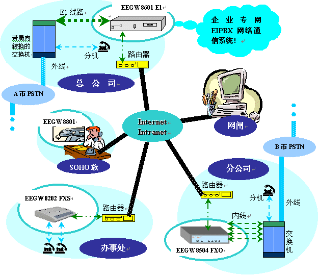 解決方案一:企業(yè)專網(wǎng)EIPBX網(wǎng)絡(luò)通信系統(tǒng)