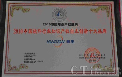 CTI論壇(ctiforum)5月7日消息(記者 楊佳林):4月25-26日,在北京人民大會堂舉辦的“2010中外知識產(chǎn)權大會”上,恒生電子股份有限公司憑借其自主研發(fā)并具有自主知識產(chǎn)權的HSIPCC產(chǎn)品榮獲“中國軟件行業(yè)知識產(chǎn)權自主創(chuàng)新十大品牌”。