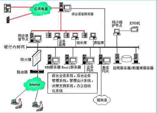 。。博宇公司銀行客戶服務(wù)中心系統(tǒng)由智能排隊(duì)機(jī)(含接入服務(wù)器)或帶語音板卡的工控機(jī)、CTI服務(wù)器、交互式語音應(yīng)答系統(tǒng)IVR、語音傳真服務(wù)器、人工座席、工作流服務(wù)器、數(shù)據(jù)庫服務(wù)器、Internet服務(wù)器、業(yè)務(wù)網(wǎng)關(guān)服務(wù)器、通信網(wǎng)關(guān)服務(wù)器、錄音留言工作站、網(wǎng)絡(luò)系統(tǒng)等組成。其技術(shù)在國內(nèi)處于領(lǐng)先水平。