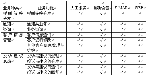 F、通知類(lèi)業(yè)務(wù):對(duì)某些特定的對(duì)象通過(guò)自動(dòng)呼出或人工呼出進(jìn)行通知,實(shí)現(xiàn)政策法規(guī)、專(zhuān)題的通知,方式可以是電話、傳真、eMail、短消息、網(wǎng)站等;