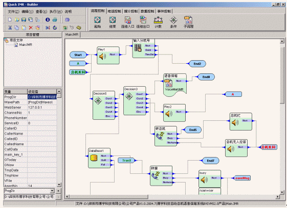 支持語音流程自動生成功能,便于擴展業(yè)務(wù):系統(tǒng)提供功能強大的應(yīng)用開發(fā)環(huán)境:可視化語音流程開發(fā)環(huán)境、DLL功能加載、人工座席控制等;提供在線調(diào)試工具、預(yù)編譯功能及錯誤檢查功能;提供開放的應(yīng)用層接口,動態(tài)加載新的業(yè)務(wù)模塊