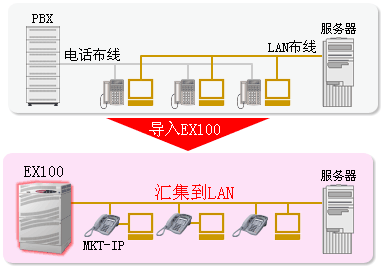而且,在增設(shè)電話機(jī)時(shí)只需將電話機(jī)接到LAN集線器上就完成了電話設(shè)置,大幅度削減了以往繁瑣的設(shè)置過(guò)程及成本。