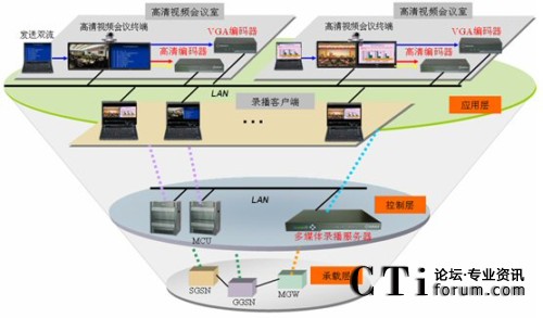 圖:銳取多媒體錄播系統(tǒng)應(yīng)用于IMS系統(tǒng)高清視頻會(huì)議