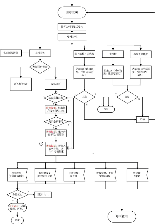 當客戶的余額不足一分鐘時,系統(tǒng)報提示音和催掛音并自動釋放電話鏈路。 |
