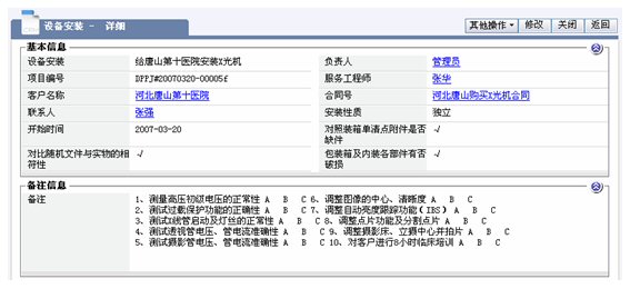 對于需要安裝的項目記錄,包括項目的安裝團(tuán)隊、日程安排、安裝費用、安裝文件、安裝階段等的管理