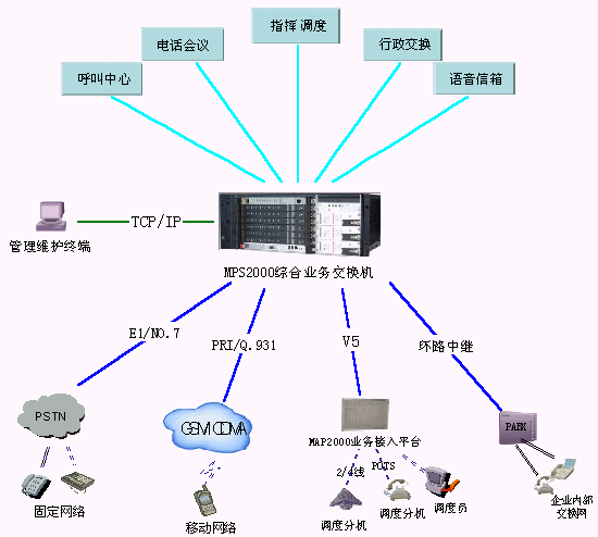 同時MPS2000綜合業(yè)務(wù)交換機(jī)能支持NO.7、NO.1、Q.931等在網(wǎng)運(yùn)行的所有信令協(xié)議。