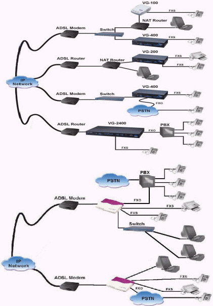 利用企業(yè)已有網(wǎng)絡(luò)(或新建網(wǎng)),接入VG400語(yǔ)音網(wǎng)關(guān)系列設(shè)備,將總部和分部之間的業(yè)務(wù)網(wǎng)提升為一個(gè)數(shù)據(jù)話音綜合網(wǎng),使總部和分部之間構(gòu)成一個(gè)企業(yè)內(nèi)部的電話網(wǎng)。免去企業(yè)內(nèi)部的長(zhǎng)話和市話費(fèi)用,更使企業(yè)內(nèi)部業(yè)務(wù)管理、辦公自動(dòng)化提升到一個(gè)更高的水平。