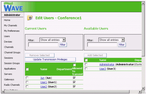 WAVE的使用方式為:管理員在服務(wù)器端建立IP電話會議,參加者使用本地計算機作為客戶端,通過耳機和麥克風(fēng)即可加入會議。一臺普通的奔四PC機可以支持數(shù)千個會議,每個會議也允許數(shù)百個用戶參加。管理員可以分配用戶不同的權(quán)利:如講話,主持會議等等。
