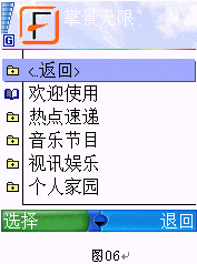 4.現在此軟件支持的媒體網站只有"掌景無限",估計以后隨著肥 6 用戶及在線視頻播放功能的普及,類似的網站會更多,打開"掌景無限",則系統會提示你所選擇的連接接入點,