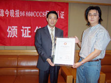2004年9月9日,天津今晚報(bào)公眾服務(wù)中心通過了《全國呼叫中心運(yùn)營績效標(biāo)準(zhǔn)》(CCCS-OP-2003)認(rèn)證,并獲得由中國信息化推進(jìn)聯(lián)盟客戶關(guān)系管理專業(yè)委員會(huì)頒發(fā)的認(rèn)證證書(四星級客戶服務(wù)中心),成為國內(nèi)傳媒業(yè)首家通過此認(rèn)證的呼叫中心。