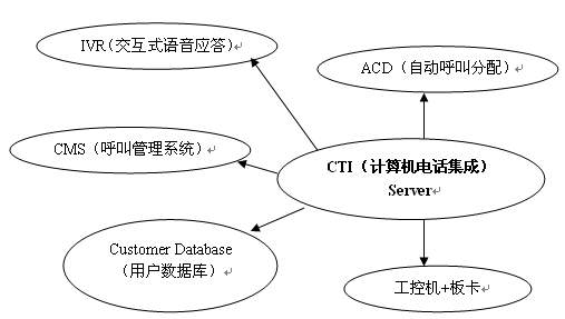 以CTI(計算機電話集成)為核心模塊,實現(xiàn)對IVR(交互式語音應(yīng)答)、ACD(自動呼叫分配)、CMS(呼叫管理系統(tǒng))、板卡+工控機、Customer