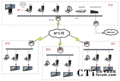 MCU,1臺RSS2000錄播服務器,9臺HDX7002XL組成,在應用上分為兩部分:主要核心設備---采用寶利通(POLYCOM)最新技術的多點控制單元RMX1016C及高清錄播RSS2000,滿足培訓中心對整個系統(tǒng)的會議召集及管理,系統(tǒng)還可以進行高清的錄播直播,把相關的培訓內容制作成培訓課件存檔分發(fā)給培訓學員;其他各地單位設備:分別采用高清硬件終端HDX7002及高清實物展臺、高清DV等各類會議室設備,終端支持雙流、實物展臺及移動DV圖像的輸入,根據(jù)不同的培訓需求切換不同的圖像場景,為培訓中心設計了一套完整視頻培訓解決方案。