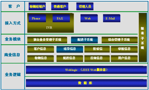 華泰貝通與南通珠峰電腦公司合作建設(shè)的南通煙草客戶服務(wù)中心系統(tǒng),覆蓋南通市和下屬六個(gè)縣市,實(shí)現(xiàn)了電話訪銷、電子結(jié)算、物流配送等業(yè)務(wù)功能,是煙草銷售業(yè)電子商務(wù)的典型案例,南通煙草在現(xiàn)有電子商務(wù)平臺基礎(chǔ)上,將進(jìn)一步發(fā)展與完善系統(tǒng)功能,建立一個(gè)穩(wěn)定實(shí)用、數(shù)據(jù)高度共享、緊扣業(yè)務(wù)需求及調(diào)控能力強(qiáng)的高水平信息系統(tǒng),以成熟的客戶關(guān)系管理,實(shí)現(xiàn)優(yōu)質(zhì)的個(gè)性化客戶服務(wù);以完善的商業(yè)智能化系統(tǒng),提供敏捷高效的經(jīng)營分析與決策支持;以科學(xué)的倉儲配送資源管理,實(shí)現(xiàn)物流效益的最大化。
