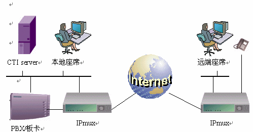 針對目前呼叫中心部署過程中對于IP遠程座席的需求,北京佳訊飛鴻電氣有限責任公司推出了系列IPmux設備。 用戶只需將原有座席的電話線插到IPmux設備上,通過互聯(lián)網(wǎng),即可將該座席延伸到全球任意地點。
