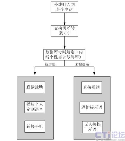 - 系統(tǒng)利用交換機(jī)的話音轉(zhuǎn)移功能,將轉(zhuǎn)移過(guò)來(lái)的來(lái)話信息進(jìn)行過(guò)濾處理,從而實(shí)現(xiàn)語(yǔ)音攔截的功能。