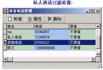。。通過對某些特殊電話號碼的禁止錄音設(shè)置,DVS將自動(dòng)過濾該號碼進(jìn)行不錄音處理,以滿足私人通話及特殊場合的需要。