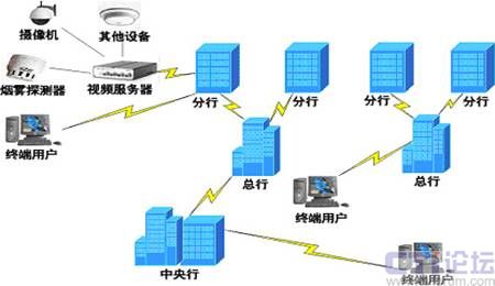- 由于金融系統(tǒng)的機(jī)構(gòu)較多且分散,所以監(jiān)控中心可以分為若干級(jí)別,功能上相互獨(dú)立,但在資源管理上卻可以共享互聯(lián)。例如分行、總行、中央行這樣的級(jí)別嵌套,就可以設(shè)立3級(jí)模式,在每一級(jí)上都是一套功能完備的監(jiān)控系統(tǒng),并對(duì)上一級(jí)負(fù)責(zé),使得系統(tǒng)中任何一臺(tái)電腦,只要通過(guò)IE瀏覽器就能監(jiān)控到網(wǎng)絡(luò)中任何一個(gè)鏡頭。