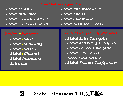 Siebel系統(tǒng)公司是全球領先的基于Web的前端軟件系統(tǒng)供應商,其Siebel eBusiness 2000系列產(chǎn)品更是處于市場的領先地位。Siebel ebusiness2000能夠?qū)崿F(xiàn)以客戶為中心進行多種接觸渠道(主要包括Internet、Web、E-mail、callcenter 呼入/呼出、 市場服務、 電話銷售、領域銷售、領域服務、分銷商/渠道伙伴等)的市場銷售、市場營銷、服務等功能, 通過創(chuàng)建一個統(tǒng)一的面向客戶的信息數(shù)據(jù)庫(其中包括所有的客戶信息、歷史交易信息、及服務、產(chǎn)品、客戶接觸信息等),可以使企業(yè)能夠以統(tǒng)一的視角面對客戶;同時,客戶也可以選擇任何接觸渠道與企業(yè)進行溝通。Siebel eBusiness2000產(chǎn)品主要分為以下三大系列,如圖一所示(點擊圖片放大)。