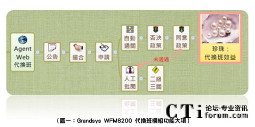 以Grandsys WFM8200為例,其所提供的班務管理模組,允許呼叫中心匯入Excel班表并提供主管以圖形拖拉調度班務,而客服人員可以瀏覽器,進行代換班之公告、撮合、申請,除了自動比對同意否決政策進行,自動通關的判斷以外,班組長或排班師也可進行人工批閱,可以說是呼叫中心入門的班務管理系統(tǒng)。