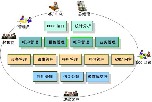 | 呼叫處理 | 設(shè)計(jì)原則: 處理接受終端用戶的呼叫請求。 代理向policy請求呼叫認(rèn)證系統(tǒng) 中每一個(gè)呼叫,負(fù)責(zé)上報(bào)給policy,并接受policy的指示。 功能: 設(shè)備管理:包括:設(shè)備信息管理、設(shè)備號(hào)碼管理、用戶的路由策略決定,統(tǒng)計(jì)分析、綜合查詢等等。 路由管理:為管理者全方位地管理系統(tǒng)擁有的路由資源,并對這些資源進(jìn)行開發(fā)提供決策支持。如為不同的客戶不同的要求,提供最適合的路由組合。 呼叫管理:監(jiān)控系統(tǒng)現(xiàn)在正在進(jìn)行的通話,讓管理者實(shí)時(shí)了解系統(tǒng)當(dāng)前的業(yè)務(wù)狀況。 ASR統(tǒng)計(jì):讓管理員實(shí)時(shí)了解系統(tǒng)的近一段時(shí)間的各類用戶,各路由的接通率,平均通話時(shí)長等。 網(wǎng)管:提供管理員管理每個(gè)設(shè)備的信息,并提供遠(yuǎn)程登錄管理到Internet上任何注冊到系統(tǒng)上的設(shè)備。 帳戶管理:管理系統(tǒng)中的每一個(gè)帳戶,支持多級(jí)的帳戶管理。上一級(jí)可以依據(jù)權(quán)限對下一級(jí)進(jìn)行管理。 批價(jià)管理:為各種帳戶提供與其相適應(yīng)的價(jià)格策略,以最低的成本最有效地激勵(lì)客戶。如定制打折,套餐等不同的定價(jià)策略. 帳單管理:為每個(gè)帳戶提供定時(shí)準(zhǔn)確帳單收據(jù)。可生成 Word、Excel、txt 等不同格式的帳單明細(xì)報(bào)表和統(tǒng)計(jì)報(bào)表。 業(yè)務(wù)管理:為每個(gè)用戶提供各種不同用戶所需要的業(yè)務(wù),并能快速的提供新的業(yè)務(wù)。如呼叫轉(zhuǎn)移,呼叫等待等業(yè)務(wù)。 |