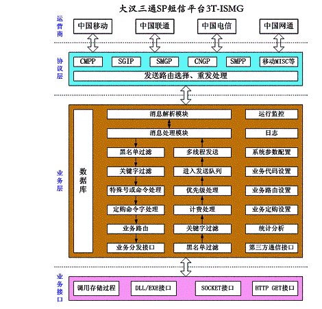 ;國際通用協(xié)議 SMPP 3.4 、 SMPP 3.4 ,每個協(xié)議實行模塊化,開發(fā)成對應(yīng)的動態(tài)鏈接庫,并提供統(tǒng)一的接口。