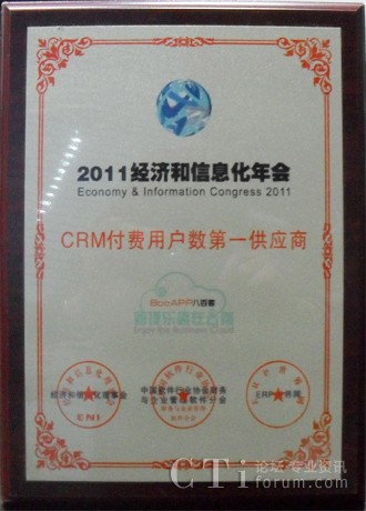 作為全球企業(yè)管理軟件領(lǐng)跑者,八百客參加了此次會(huì)議,并就IT業(yè)戰(zhàn)略性發(fā)展、工業(yè)轉(zhuǎn)型升級(jí)等問題和與會(huì)企業(yè)家進(jìn)行了深入探討,集中、深刻闡釋產(chǎn)業(yè)精髓,洞悉和把握未來發(fā)展方向,尋求最佳的信息化成長(zhǎng)模式。年會(huì)期間的招待晚宴穿插各類年度大獎(jiǎng)的頒獎(jiǎng)典禮,讓與會(huì)的政界、學(xué)界、商界等各路貴賓充分交流信息,建立友誼,為達(dá)成長(zhǎng)期合作奠定良好的基礎(chǔ)。基于八百客在國內(nèi)CRM領(lǐng)域的優(yōu)秀表現(xiàn),本次年會(huì)特別授予了八百客“CRM付費(fèi)用戶數(shù)第一供應(yīng)商”的大獎(jiǎng)。