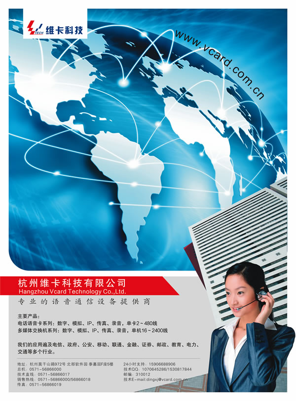 維卡科技有限公司(簡稱“維卡科技”)成立于2004年,是一家以下一代網(wǎng)絡(luò)通信為發(fā)展方向的高科技企業(yè),公司成立于上海,在杭州設(shè)立研發(fā)和生產(chǎn)基地,公司主要從事通信和語音產(chǎn)品的研究、開發(fā)、生產(chǎn)及銷售,是國內(nèi)通信語音產(chǎn)品―――電話語音卡的核心供應(yīng)商之一。公司匯集一批多年從事CTI技術(shù)研究的高級專業(yè)人才,堅(jiān)持自主創(chuàng)新,自主研發(fā),不斷推出適合人性化的一流產(chǎn)品,經(jīng)過短短幾年的發(fā)展,公司的語音卡產(chǎn)品已經(jīng)躋身全國三強(qiáng),為中國的CTI行業(yè)貢獻(xiàn)了一份力量。