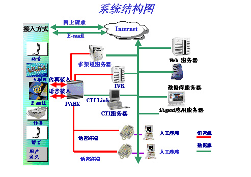 做為呼叫中心的業(yè)務(wù)管理核心,iAgent軟件和其相應(yīng)的硬件支持環(huán)境在呼叫中心系統(tǒng)結(jié)構(gòu)中占據(jù)重要的位置,iAgent全面功能實現(xiàn)依賴于整個系統(tǒng)的協(xié)同工作。