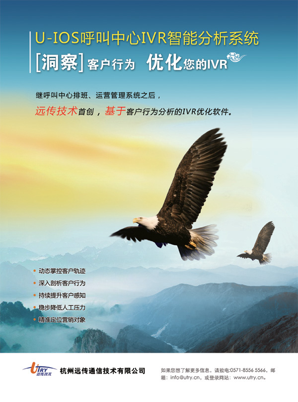 杭州遠傳通信技術(shù)有限公司是國家高新技術(shù)企業(yè)、雙軟企業(yè),具備軟件成熟度CMMI 3級資質(zhì),是專業(yè)的客戶服務(wù)管理軟件及咨詢服務(wù)提供商。公司以“追求卓越”和“客戶滿意”為目標(biāo),致力于呼叫中心、營業(yè)廳等客戶服務(wù)渠道的管理提升和信息化。憑借著公司細致周到的服務(wù),扎實穩(wěn)健的技術(shù)實力,公司在電信、金融、保險、旅游、航空、電力、互聯(lián)網(wǎng)及電子商務(wù)等行業(yè)領(lǐng)域擁有著眾多的成功案例,獲得了客戶的廣泛贊譽。