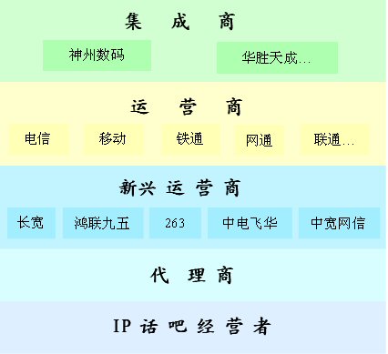 隨著電信產(chǎn)業(yè)的進一步發(fā)展,NGN等新技術(shù)的出現(xiàn),國外市場的逐步滲透,傳統(tǒng)的單一語音業(yè)務(wù)已遠遠不能滿足用戶的多元化需求,窄帶向?qū)拵、單一語音向數(shù)據(jù)、語音、視頻等多媒體業(yè)務(wù)發(fā)展已是大勢所趨。由于NGN體系架構(gòu)的開放性,業(yè)務(wù)的多元化,設(shè)備制造商—電信運營商—虛擬運營商(代理商)—最終用戶的產(chǎn)業(yè)鏈也無法適應(yīng)如今NGN的發(fā)展,必將出現(xiàn)一條更長、環(huán)節(jié)更多的NGN產(chǎn)業(yè)鏈。