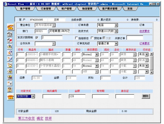 如果客戶訂單采用匯款支付方式,當財務部門收到到款通知,并輸入CRM系統(tǒng),系統(tǒng)會向發(fā)貨部門下達發(fā)貨工單。如果客戶訂單采用一卡通支付方式,系統(tǒng)確認支付無誤就立即向發(fā)貨部門下達發(fā)貨工單,整個過程全部自動化。