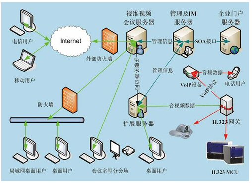 視維系統(tǒng)是一個(gè)基于IP網(wǎng)絡(luò)的綜合業(yè)務(wù)通訊平臺(tái),通過多網(wǎng)絡(luò)接入方式實(shí)現(xiàn)網(wǎng)通、電信、聯(lián)通等用戶間高速互通;通過H.323模塊將企業(yè)內(nèi)部原有的硬件設(shè)備與視維系統(tǒng)鏈接起來,有效的節(jié)約了投資;其他如SIP模塊,短信模塊,固網(wǎng)電話接入等都可以根據(jù)用戶需要進(jìn)行擴(kuò)展。視維系統(tǒng)可以支持分布式視頻服務(wù)器集群,可利用企業(yè)內(nèi)部網(wǎng)絡(luò)或者互聯(lián)網(wǎng)構(gòu)建超大規(guī)模企業(yè)綜合通訊平臺(tái);凇懊嫦蚍⻊(wù)體系架構(gòu)(SOA)”設(shè)計(jì)架構(gòu),實(shí)現(xiàn)很靈活地方便地與其業(yè)務(wù)系統(tǒng)如OA,HR,CRM,