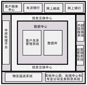 信息時(shí)代郵政客戶渠道是多元化的,它包括營業(yè)網(wǎng)點(diǎn)、傳真、電話、Web、電子郵件和其他方式,因而現(xiàn)代郵政IT框架應(yīng)支持多種客戶交互渠道,通過統(tǒng)一的數(shù)據(jù)交換平臺(tái),實(shí)現(xiàn)信息從用戶交互層到內(nèi)部信息服務(wù)系統(tǒng)之間的無縫流轉(zhuǎn)。只有整合的系統(tǒng)才能適應(yīng)激烈市場競爭的要求,為用戶提供一致的和個(gè)性化的服務(wù)。
