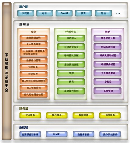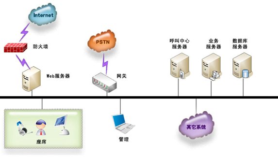 用戶層是呼叫系統(tǒng)與系統(tǒng)使用者之間的聯(lián)系層。工作人員可以通過瀏覽器進(jìn)入系統(tǒng)的業(yè)務(wù)部分進(jìn)行工作,處理相應(yīng)事務(wù);用戶可以通過電話打入系統(tǒng)的呼叫中心部分,獲得自動或人工服務(wù),也可以通過Email、短信、傳真等方式與系統(tǒng)聯(lián)系;同時(shí),系統(tǒng)可以進(jìn)行電話外撥,聯(lián)系相關(guān)部門或進(jìn)行主動服務(wù)。