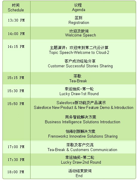 為了表達(dá)對(duì)您的感謝,同時(shí)為了我們更美好的明天,Salesforce.com攜手怡海軟件將又一次走到我們親愛(ài)的用戶(hù)中來(lái),在此特邀請(qǐng)您參加2011年6月23日舉辦的Salesforce客戶(hù)答謝會(huì)! 會(huì)上,我們將與您一起分享Salesforce.com云計(jì)算平臺(tái)建設(shè)和應(yīng)用的最新實(shí)踐經(jīng)驗(yàn),交流云計(jì)算的最新技術(shù)、解決方案。