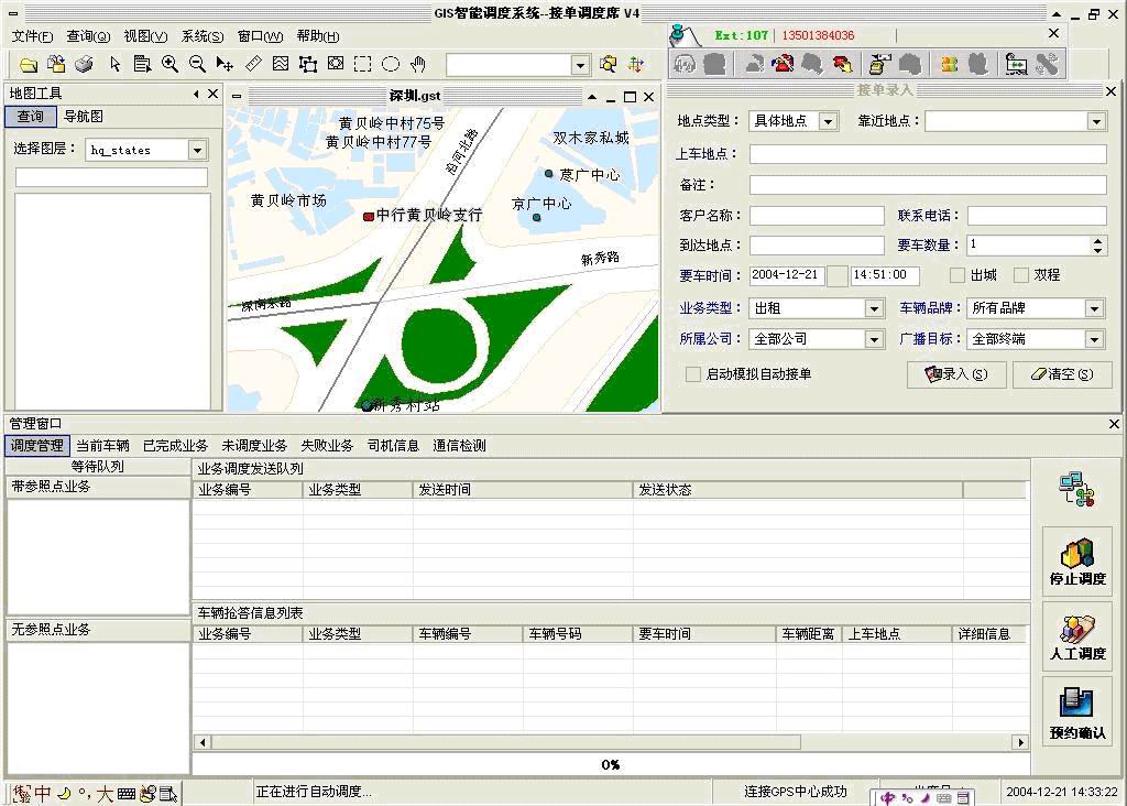 沈陽(yáng)車輛調(diào)度系統(tǒng)即是采用非圖形化控件與GPS系統(tǒng)進(jìn)行結(jié)合的。界面如圖: