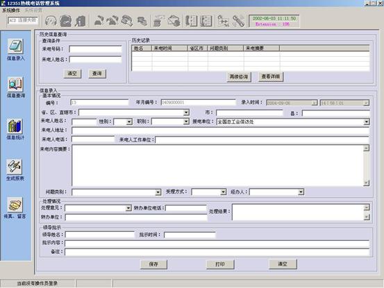 - 完善業(yè)務(wù)統(tǒng)計工作:針對健康熱線采集的信息,我們根據(jù)實(shí)際需要設(shè)計了統(tǒng)一格式的各項(xiàng)報表,同時將報表全部做電子化處理,方便業(yè)務(wù)數(shù)據(jù)的統(tǒng)計及管理,為各級領(lǐng)導(dǎo)決策提供可靠依據(jù)。
