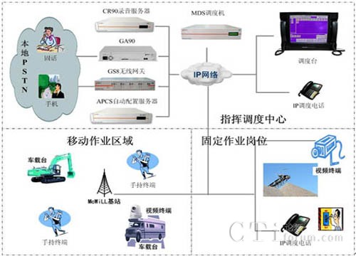 MDS系統(tǒng)可以應(yīng)用于各種作業(yè)現(xiàn)場(chǎng)的指揮調(diào)度, MDS系統(tǒng)不但支持系統(tǒng)基本的語音通信,調(diào)度中心可以通過視頻、數(shù)據(jù)、文本消息等綜合的多媒體方式與作業(yè)人員進(jìn)行通信交互,滿足各種復(fù)雜環(huán)境下的指揮調(diào)度需求。系統(tǒng)可以通過GS8無線網(wǎng)關(guān)、GA90 E1/T1網(wǎng)關(guān)等設(shè)備實(shí)現(xiàn)與PSTN網(wǎng)絡(luò)的互聯(lián),滿足與手機(jī)和固話網(wǎng)絡(luò)用戶接入需要。豐富的終端類型可以滿足用戶對(duì)固定崗位、移動(dòng)人員及車輛設(shè)備等不同環(huán)境的使用需求,根據(jù)人員崗位工作性質(zhì)可以配置IP調(diào)度話機(jī)、手持終端和車載臺(tái)等終端。